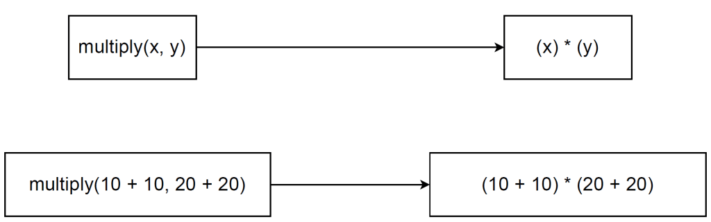 To avoid this problem, parameters in the macro definition are embraced in brackets. Let’s have a look at the modified version of our multiply macro: