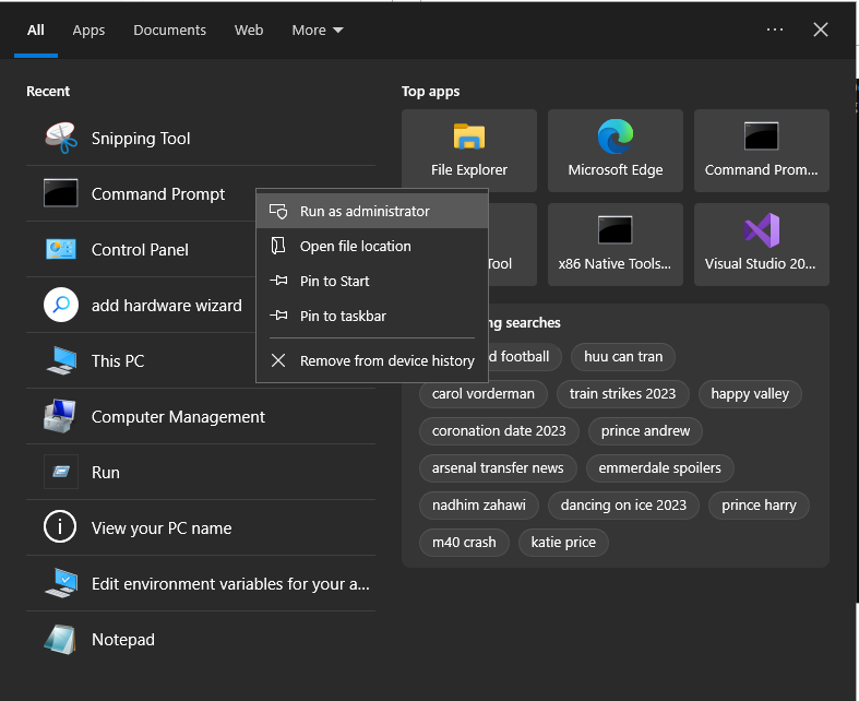 Go to Start (Windows 10), type command, let the command prompt appear on the start menu search result (as below):
