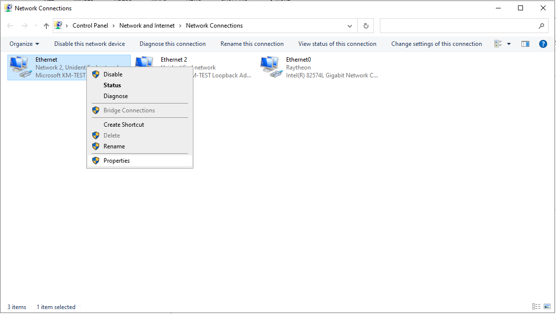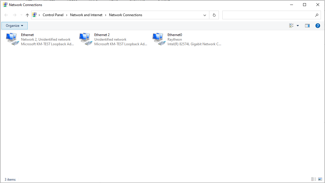 Once you click on the “Change adapter settings” option you should be able to see the available interfaces in the list. This is what I have in my VM PC at the moment: