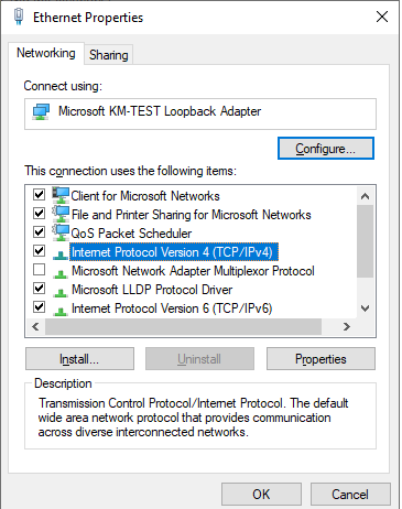 Type in the DNS server details as well. It will vary from setup to setup and hence I will not fill it in for now. Click Ok and you should have your KM-TEST adapter ready for use.