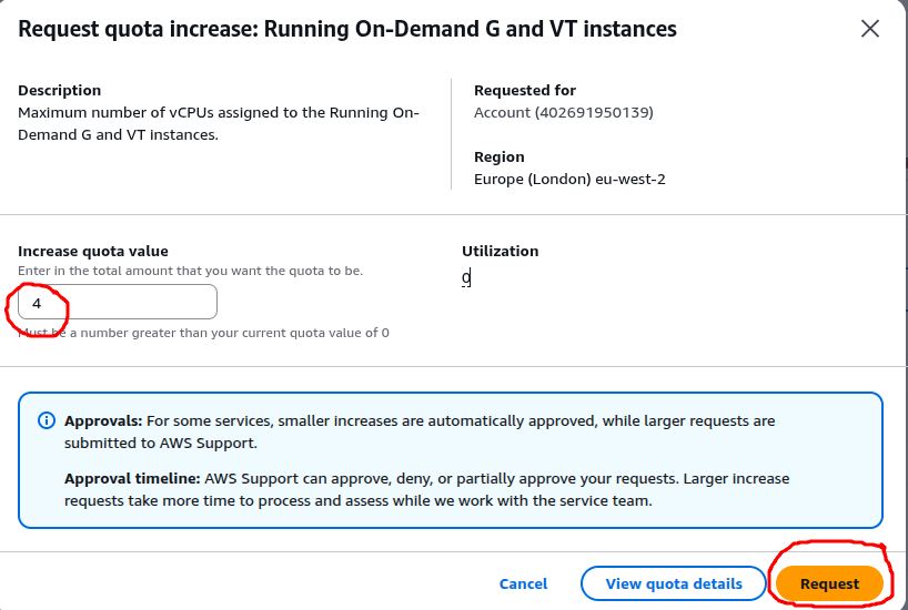 It’s worth noting that AWS approvals vary depending on the size of the request. Smaller increases are sometimes approved automatically, while larger ones are reviewed by the AWS support team.