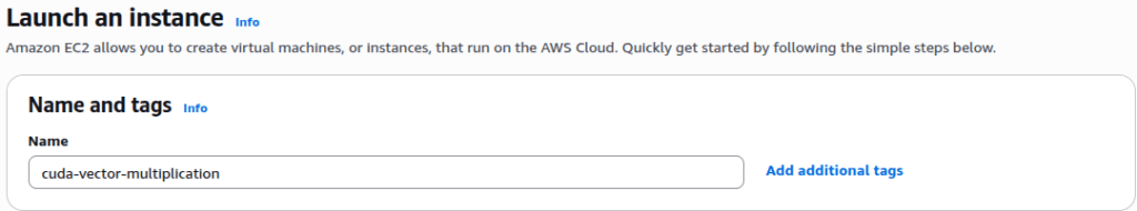 Give your instance a meaningful name, something like cuda-vector-multiplication.