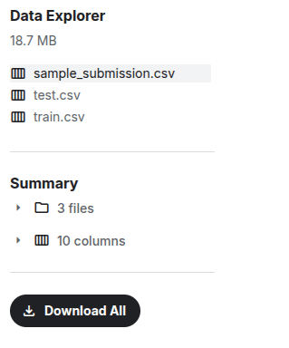 Fig 2: Data Explorer section showing files available for download