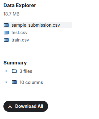 Fig 2: Data Explorer section showing files available for download