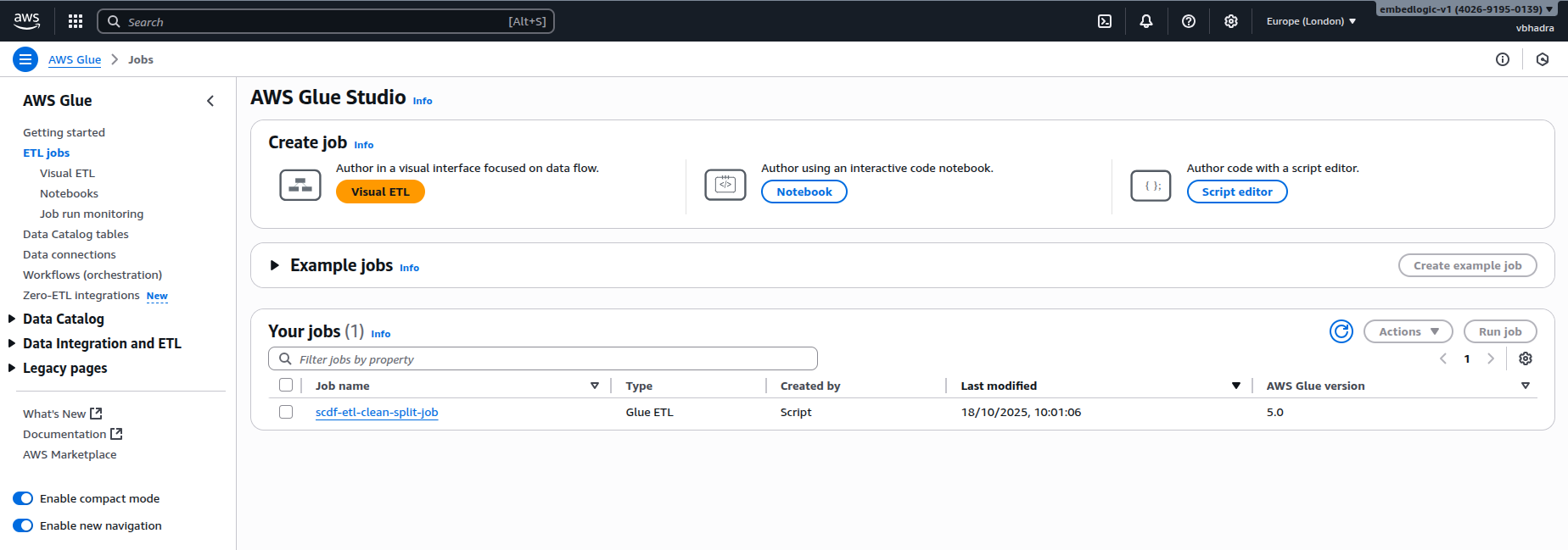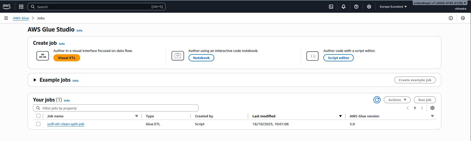 Successfully started job. Successfully started job scdf-etl-clean-split-job. Navigate to Run details for more details.
