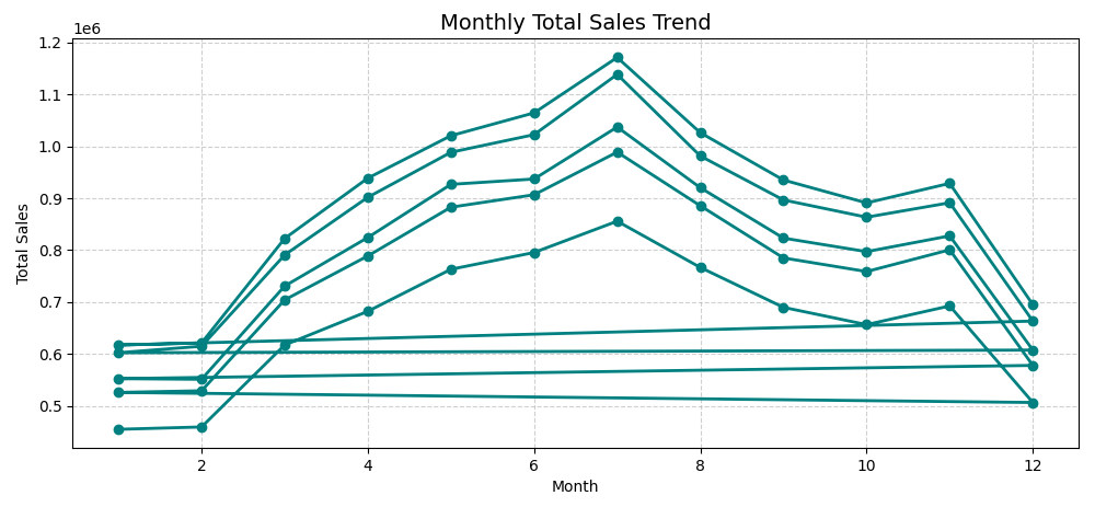 - Steady growth in total sales from January through July.